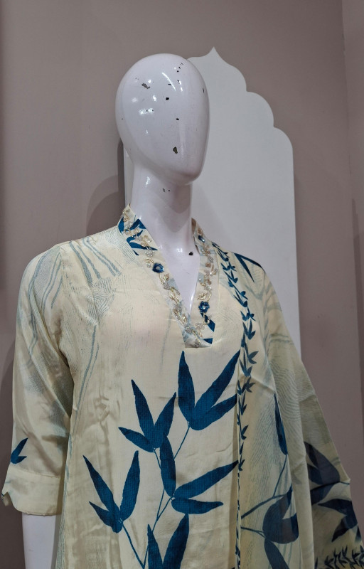 Elegant kurta pany set in soft natural crepe fabric with subtle handwork and beautiful digital print. Lightweight, flowy, and comfortable, perfect for festive wear, casual parties, and day functions. ✨