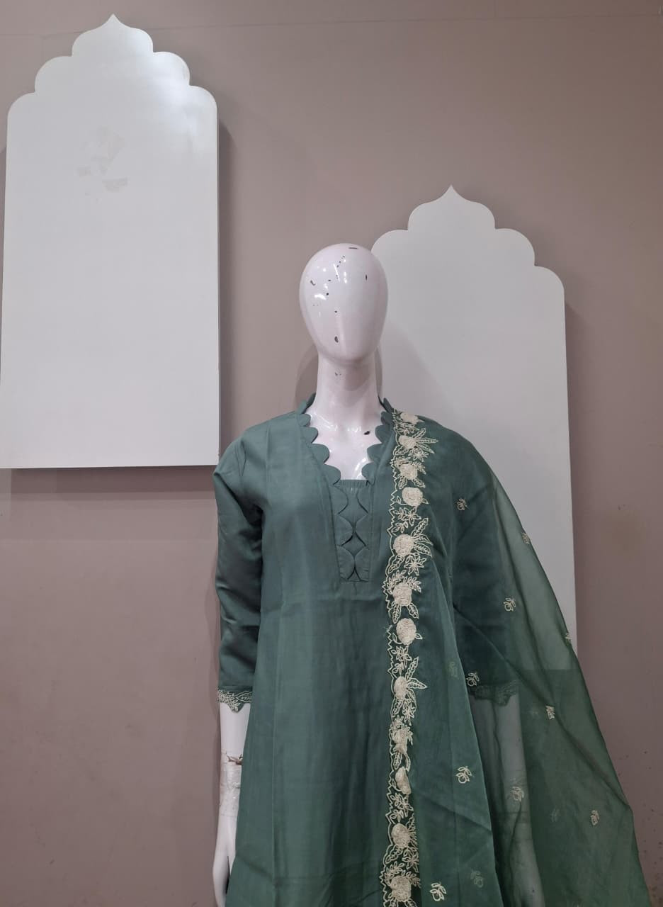 Premium Roman silk co-ord set featuring beautiful embroidery on sleeves and pants, paired with a stylish kurta. Soft texture, rich color, and graceful design—perfect for festive and casual chic looks.
