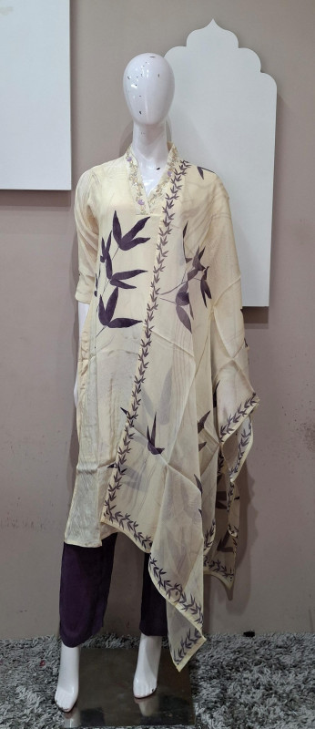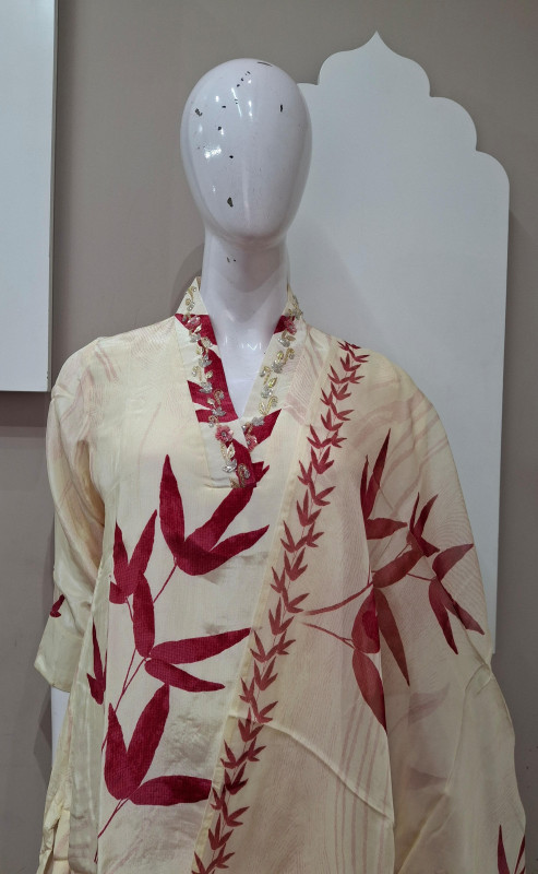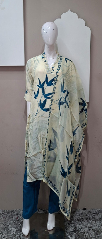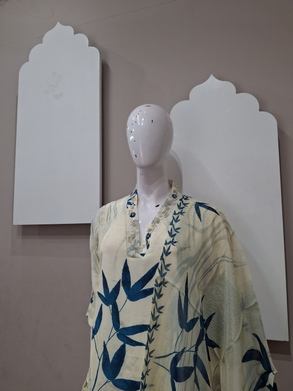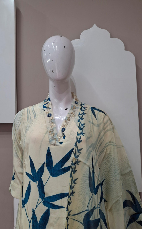 Elegant kurta pany set in soft natural crepe fabric with subtle handwork and beautiful digital print. Lightweight, flowy, and comfortable, perfect for festive wear, casual parties, and day functions. ✨