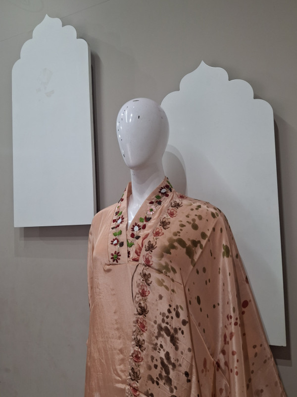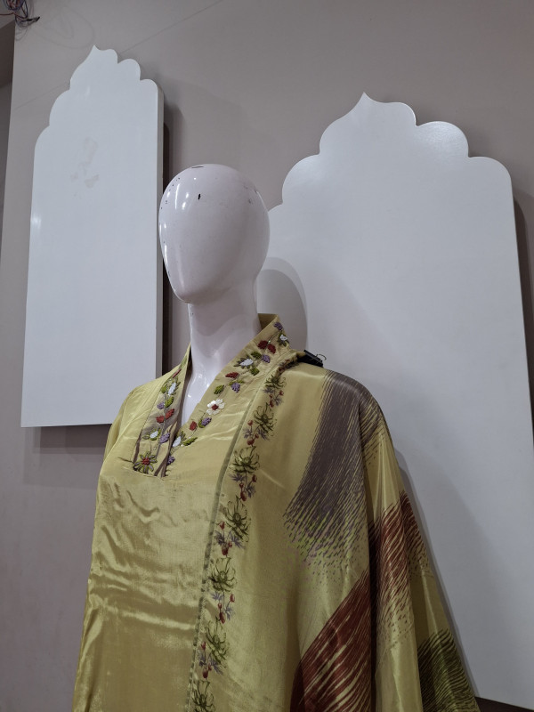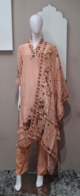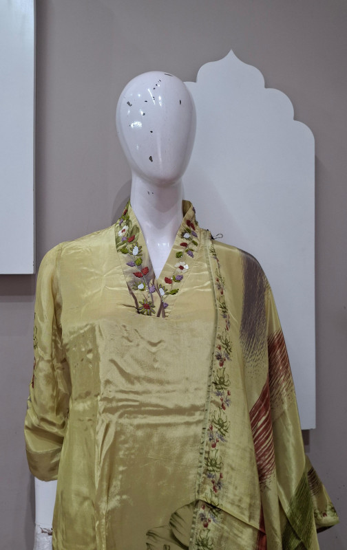 Soft natural crepe fabric kurta with matching pant and dupatta. Features elegant handwork with graceful digital print. Lightweight, comfortable, and perfect for festive occasions, casual functions, and elegant day wear. ✨