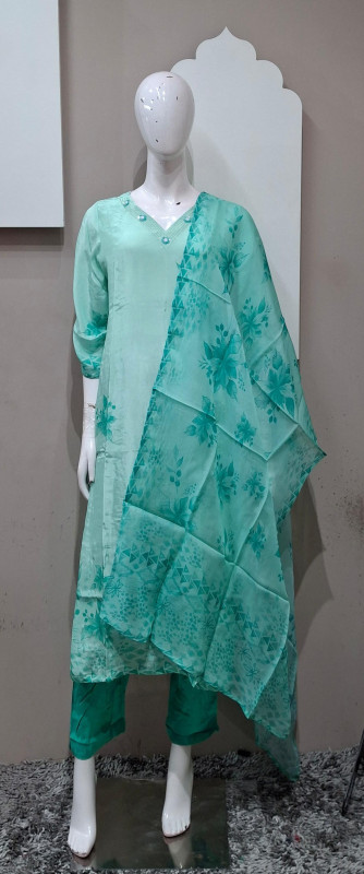 Natural crepe kurta pant duppata  featuring delicate handwork and bold digital floral print . Perfect for chic daywear and classy evenings