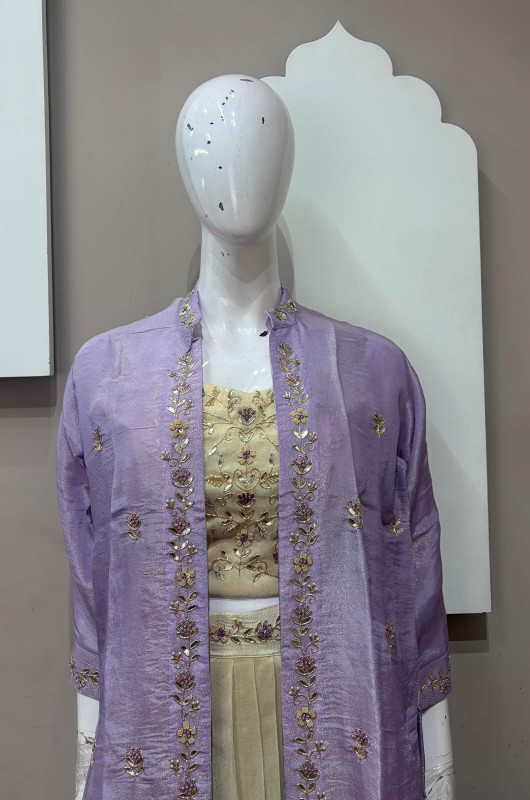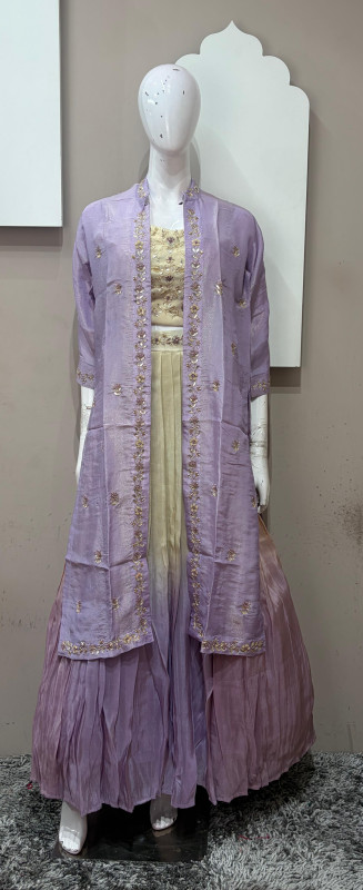 Elegant tissue fabric dress with multicolor sardozi handwork. Rich detailing with a graceful flow, perfect for festive and occasion wear.